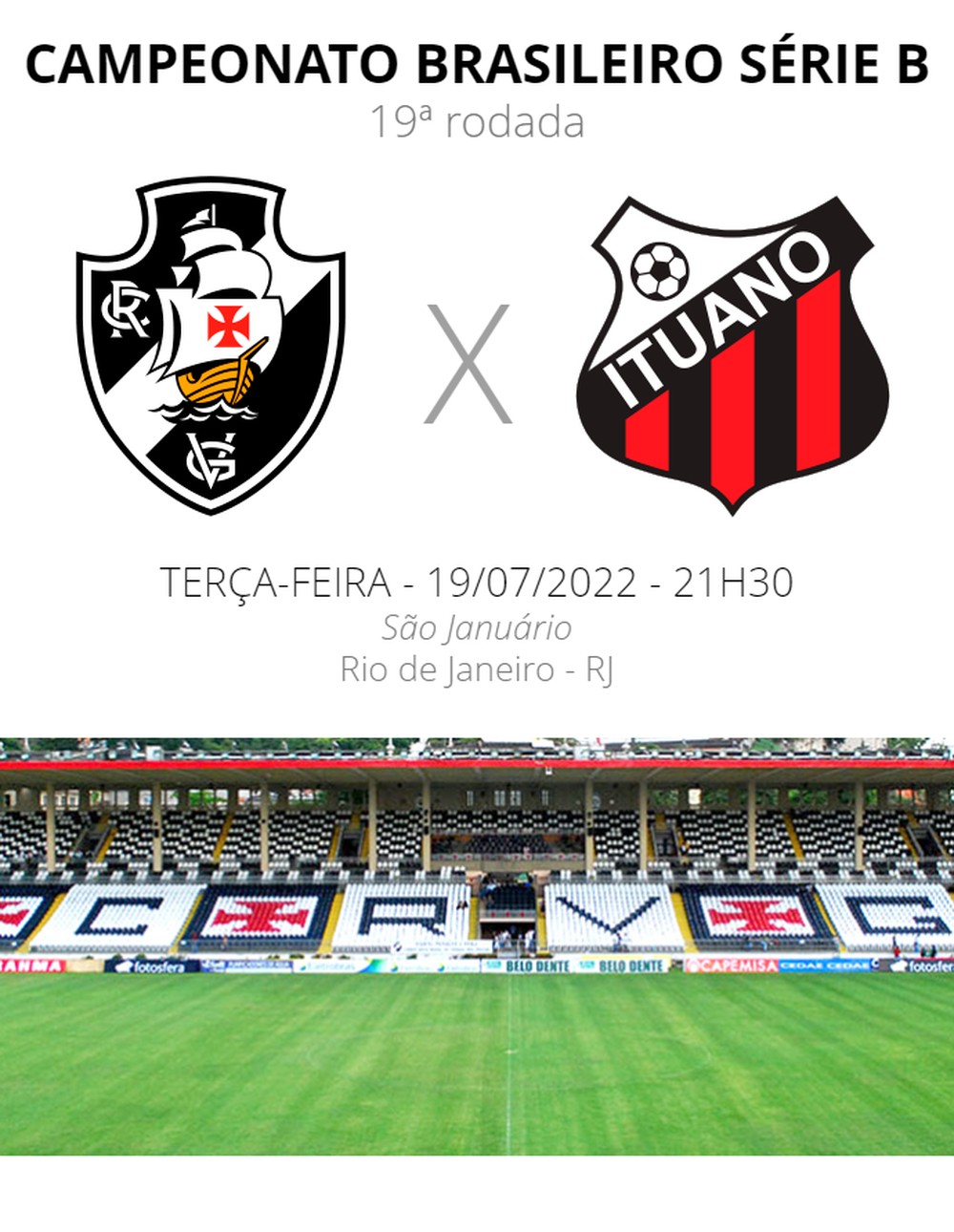 Vasco e Ituano se enfrentam nesta terça-feira, às 21h30 (de Brasília), pela 19ª rodada da Série B do Campeonato Brasileiro. Será o primeiro confronto entre as equipes na história. Enquanto o time carioca tenta aumentar a vantagem para o quinto colocado, a equipe paulista busca se afastar do Z-4.