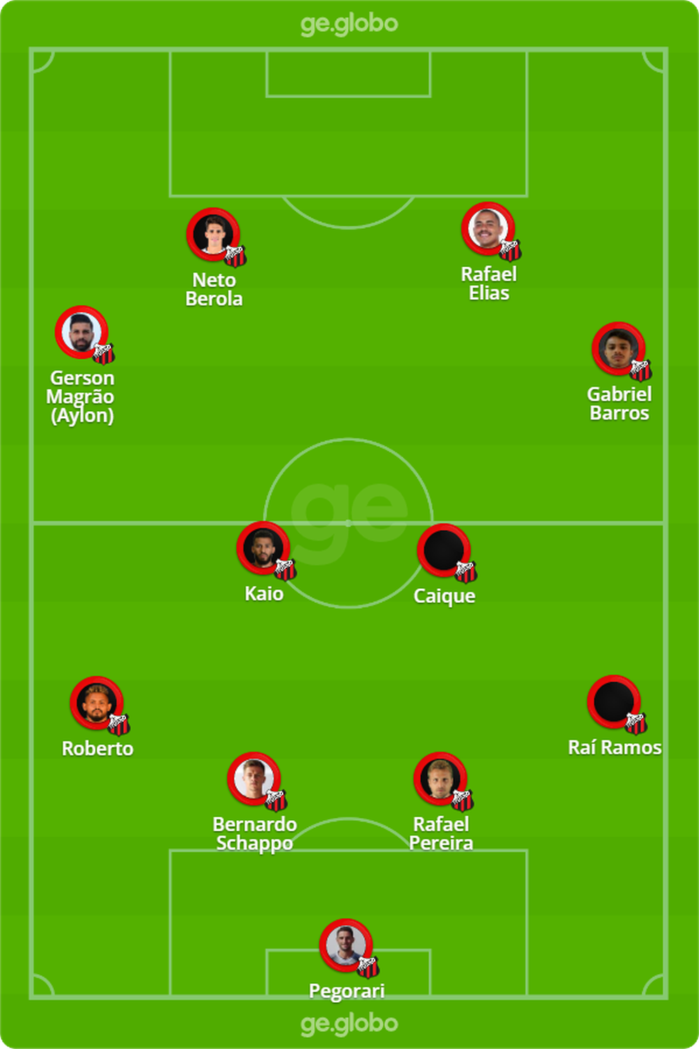 Pode haver mudança também na lateral direita. Gabriel Dias viajou para São Luís, mas não entrou em campo e segue à disposição após se recuperar de uma tendinopatia no joelho direito. Getúlio, que havia reclamado de dor no músculo adutor da coxa esquerda, continua fora do time, enquanto Palácios treinou nesta segunda depois de uma tendinopatia leve no joelho esquerdo.