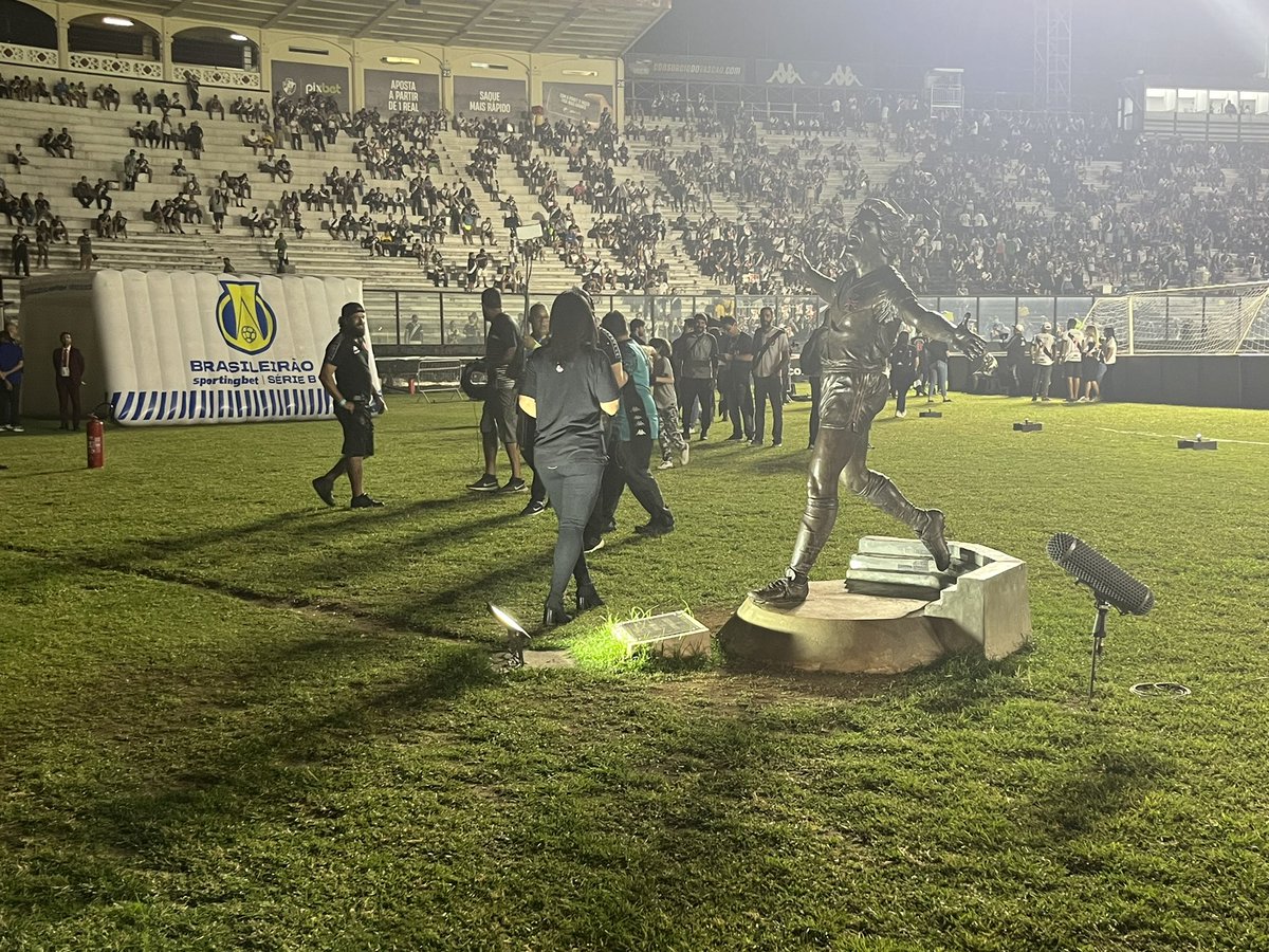 Estamos aqui aguardando o Alex Teixeira. O atacante será apresentado aos vascaínos nessa área próxima à estátua de Roberto Dinamite. #trcolina