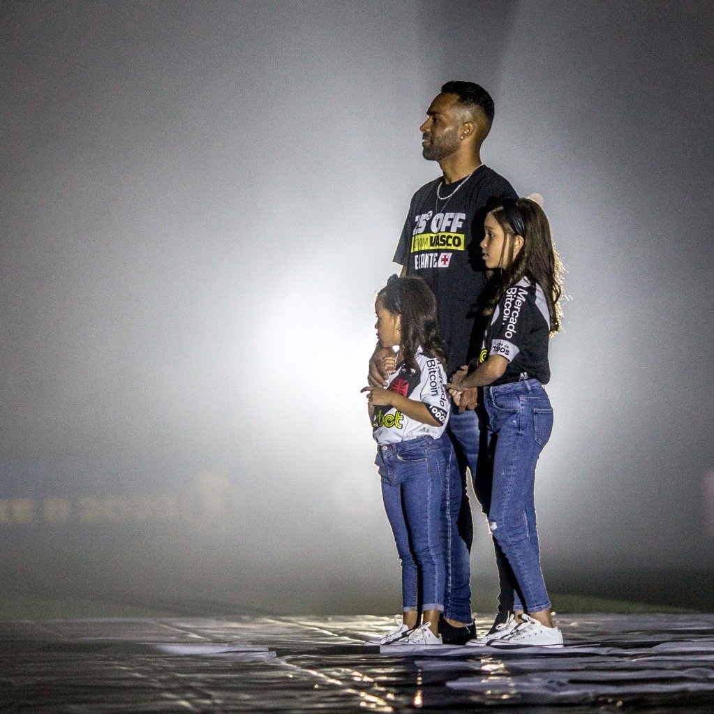 "Boa noite torcida linda. Muito obrigado por essa festa linda que vocês estão fazendo hoje na minha apresentação. Confesso que não esperava tanto, mas estou muito feliz e grato por tudo que estão fazendo por mim até hoje. O que eu posso fazer é lutar por vocês dentro de campo. Estamos juntos e rumo ao acesso. Saudações vascaínas"