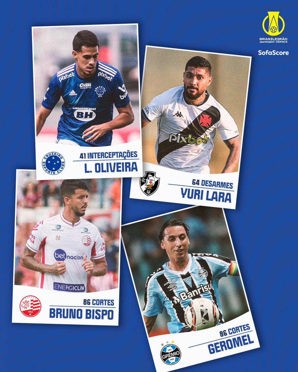 🔎 Yuri Lara (28 anos) foi o líder em desarmes do 1° turno do @BrasileiraoB.