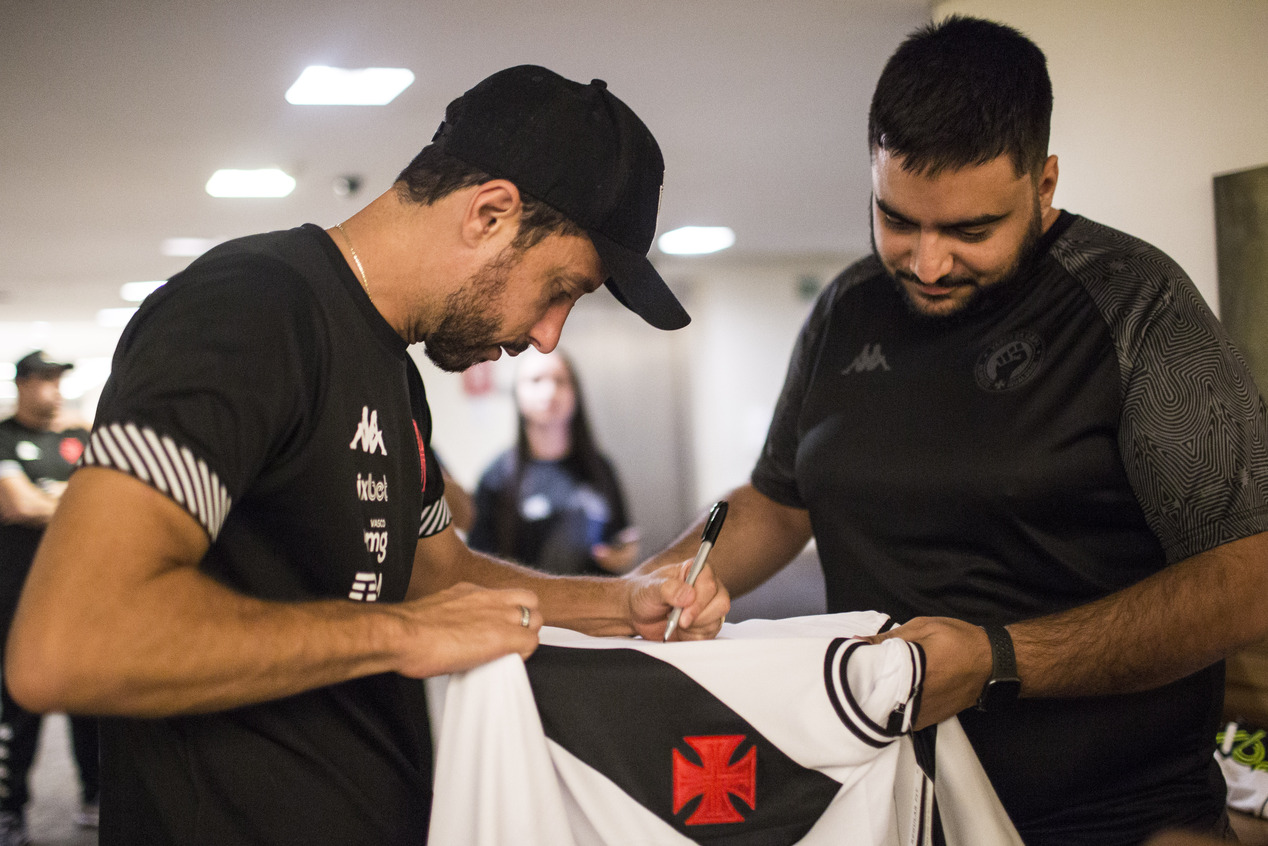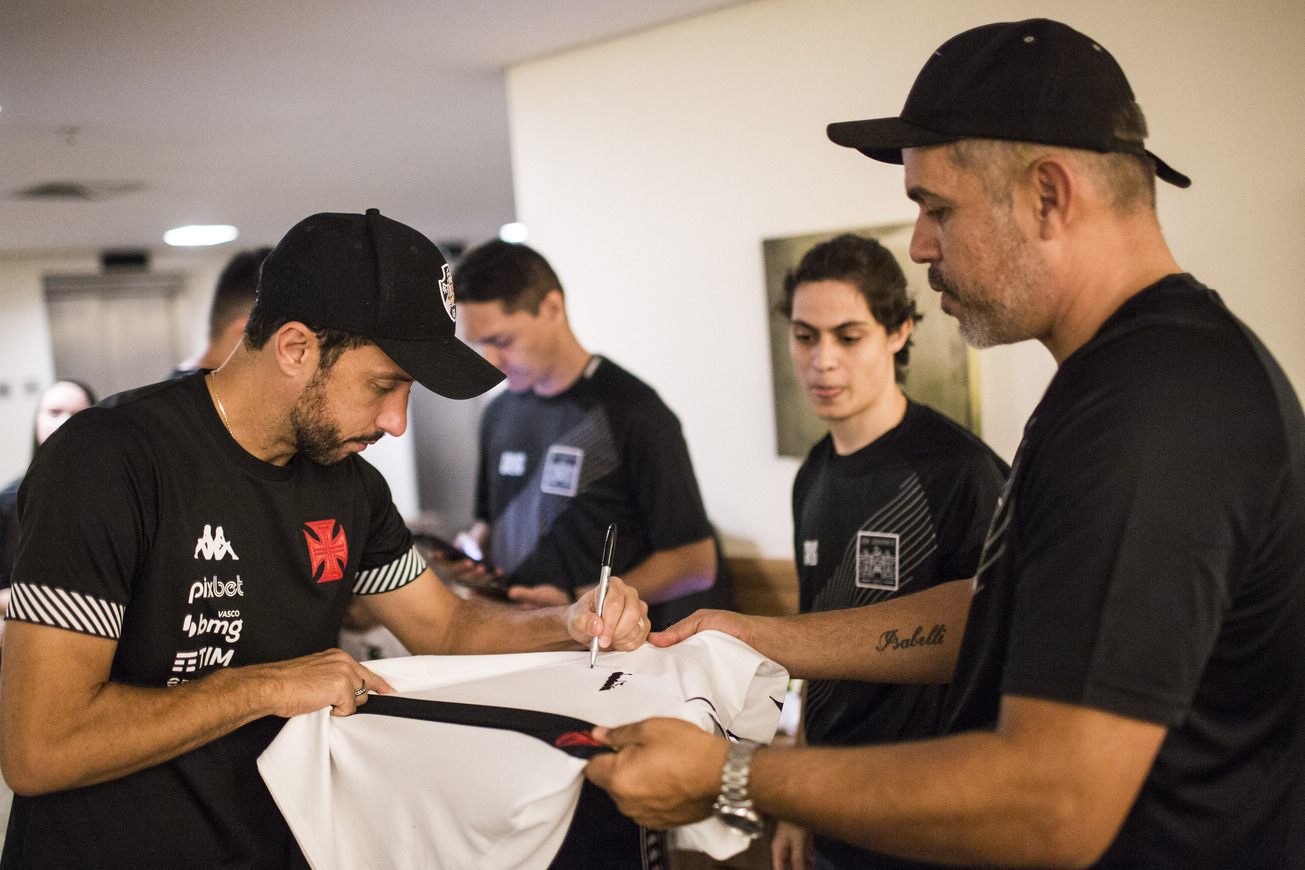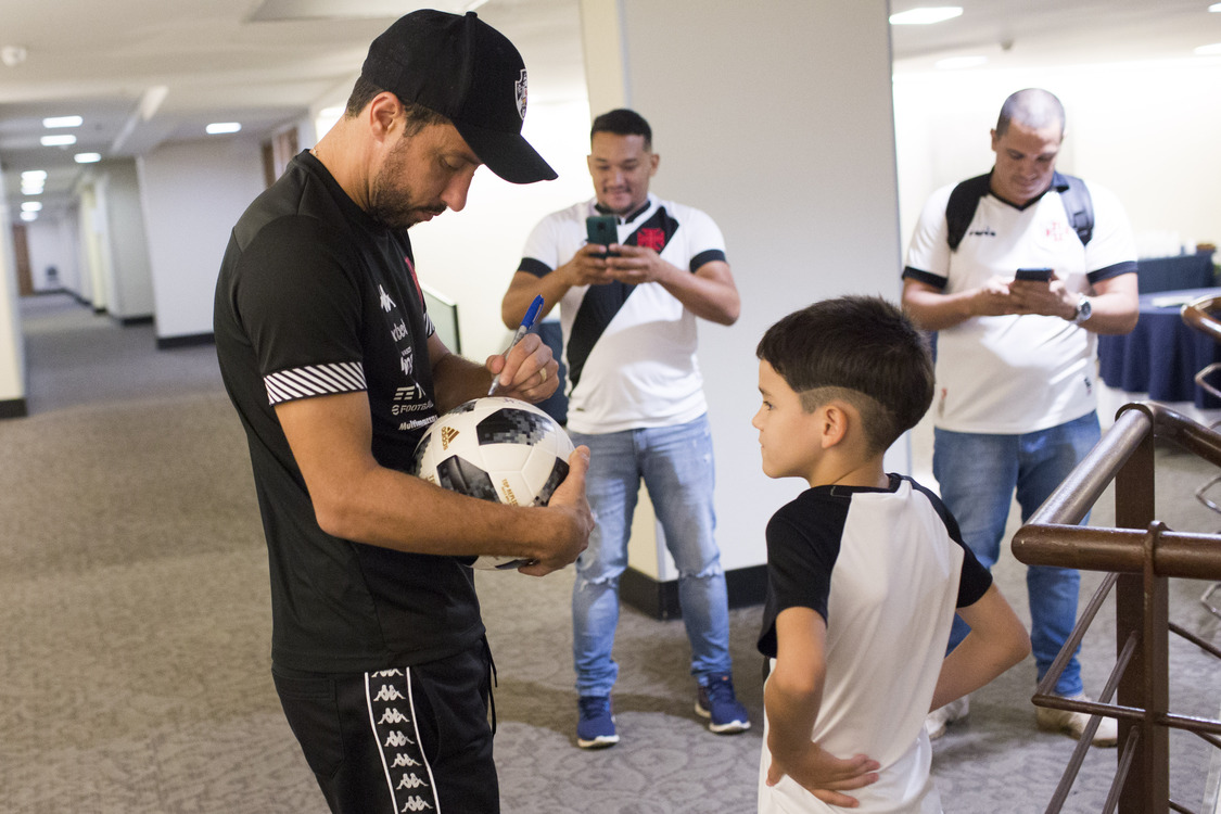 Sócios-torcedores conheceram o elenco do Vasco no hotel em Goiânia; veja fotos e vídeos