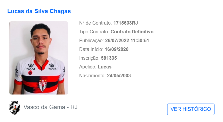 Lucas da Silva Chagas entrou no BID. Não conheço, mas o craque @Vascolouco3 informou que é zagueiro e já atuou pela equipe profissional do clube goiano.