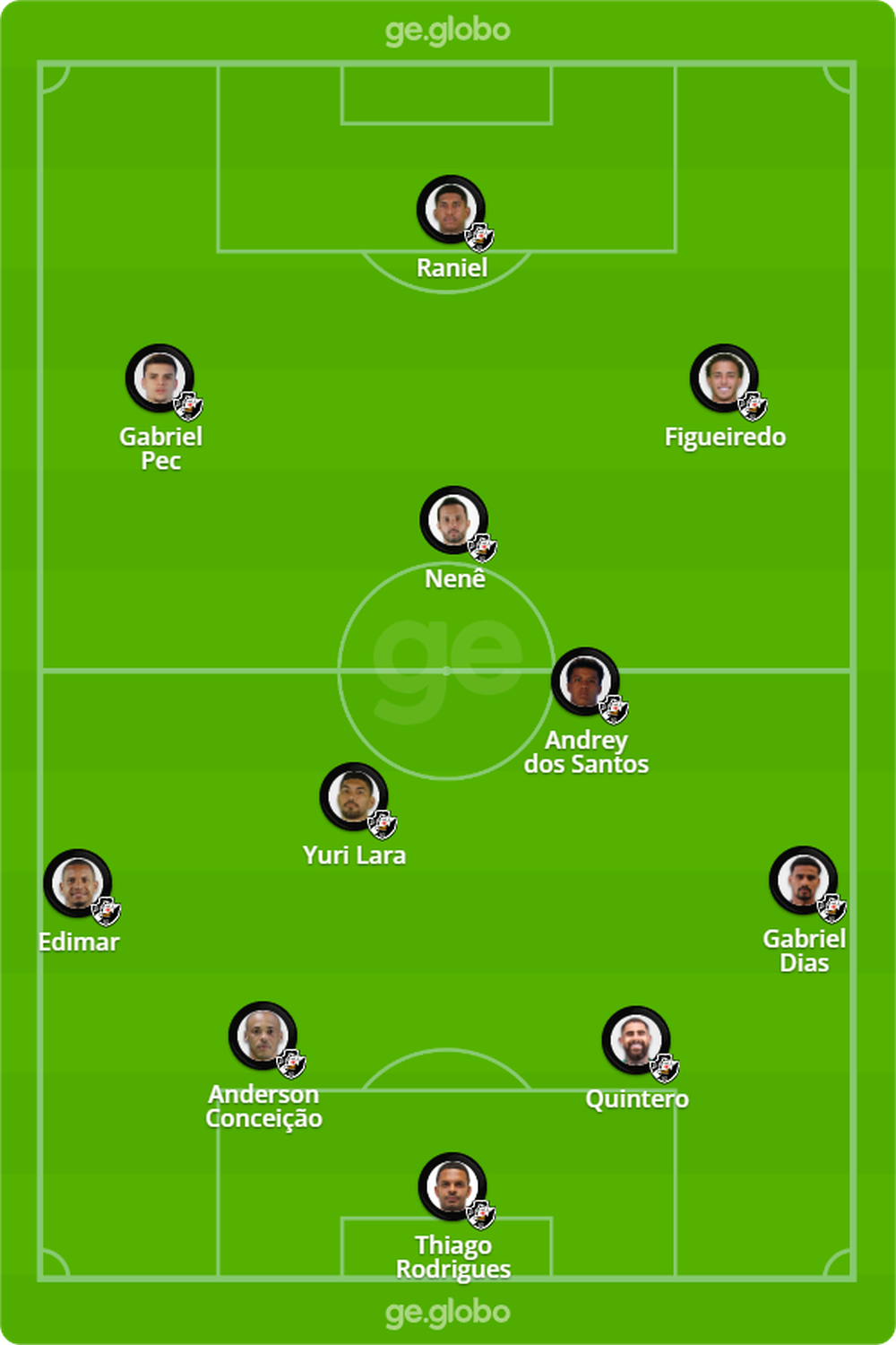 Provável escalação: Thiago Rodrigues, Gabriel Dias, Quintero, Anderson Conceição, Edimar, Yuri Lara, Andrey Santos, Nenê, Figueiredo, Gabriel Pec e Raniel.