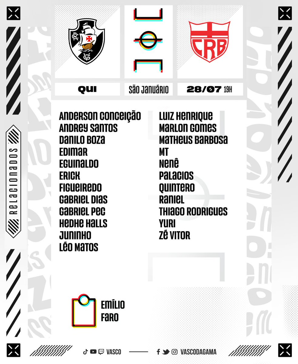 Confira os relacionados do Vasco para o jogo contra o CRB