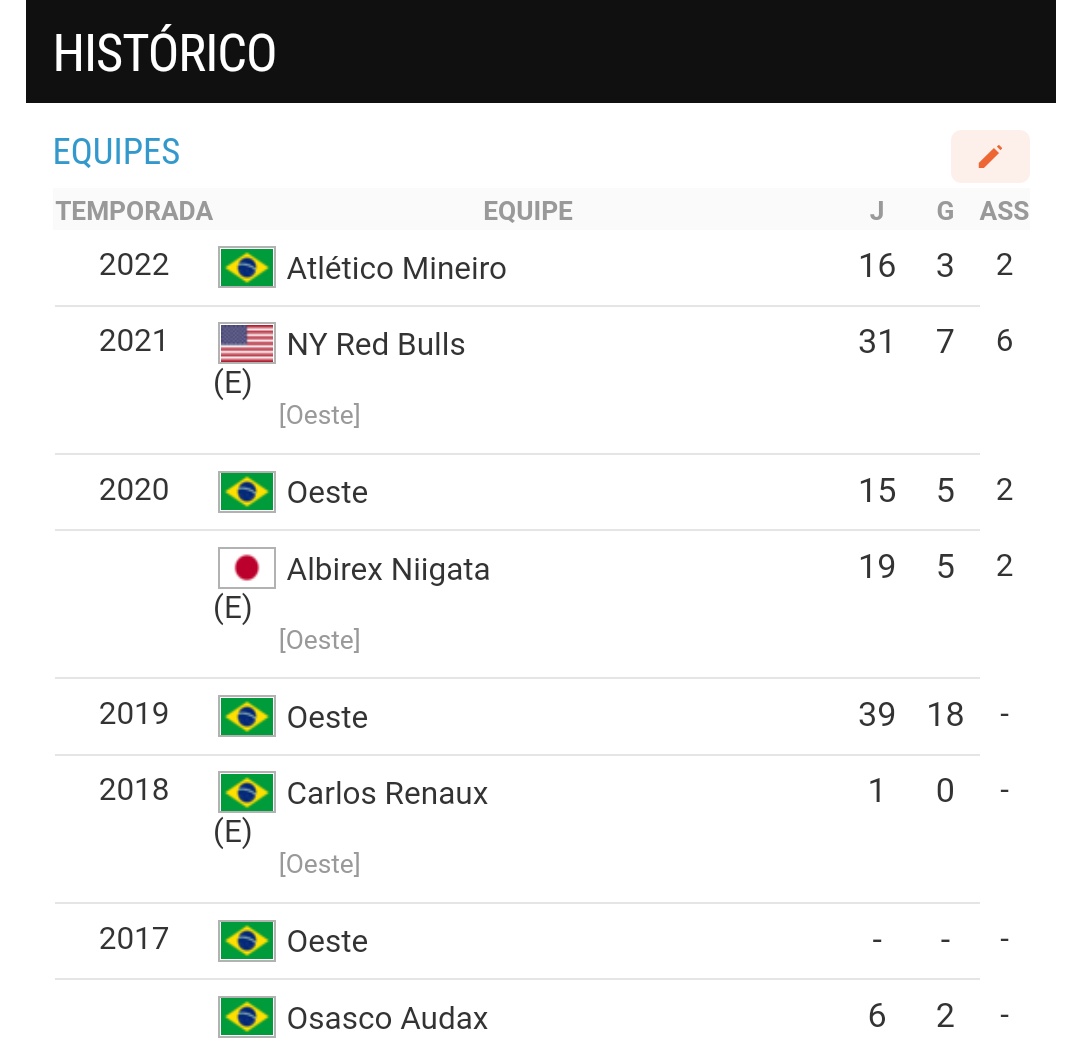 Os números completos de Fábio Gomes em todos os clubes que passou, segundo o @ogolcombr.