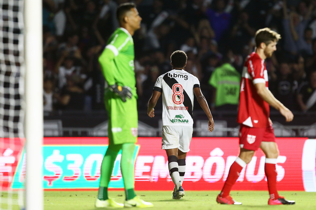 O Vasco começou com tudo a partida e abriu o placar logo aos três minutos. Após cobrança de escanteio, Andrey Santos cabeceou sozinho para a rede.