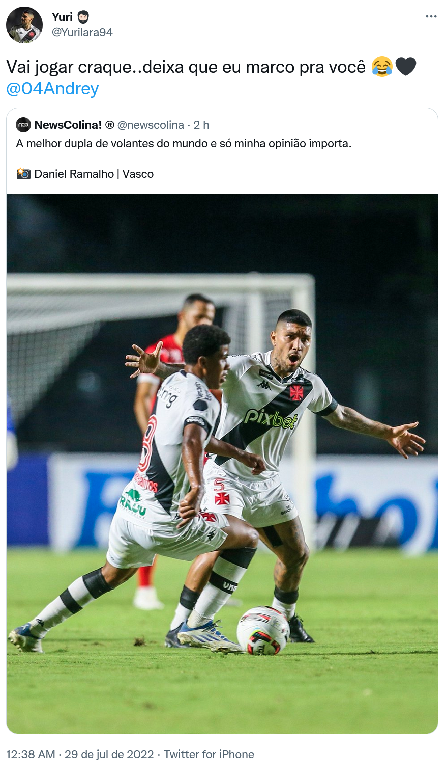 Yuri Lara brinca com Andrey Santos no Twitter: 'Vai jogar craque..deixa que eu marco pra você'