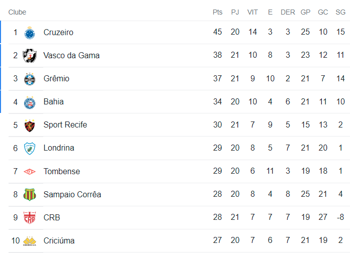 Fonte: Twitter do Campeonato Brasileiro da Série B (texto), Google (classificação)