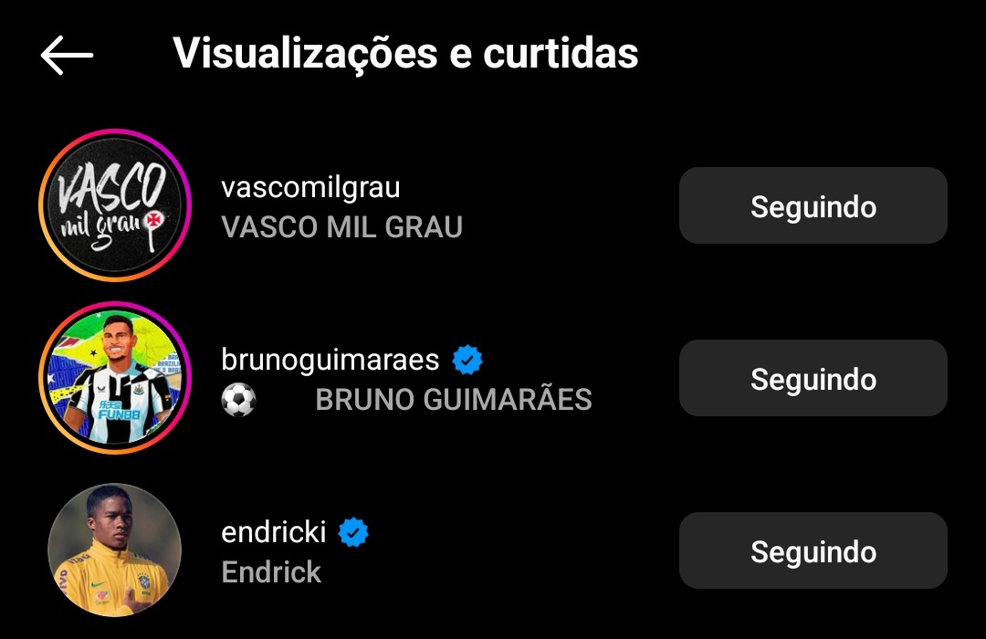 Bruno Guimarães, do Newcastle, e Endrick, do Palmeiras, curtiram publicação do Vasco da vitória sobre o CRB