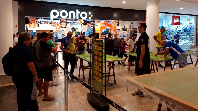 O primeiro dia (29/07/2022) do evento do Dia dos Pais Top Shopping, em Nova Iguaçu, foi um sucesso! Muita interação entre publico e atletas, novos praticantes e muita divulgação positiva! O envento foi prestigiado pleo presidente da Federação de Futebol de Mesa do estado do Rio de Janeiro (FEFUMERJ), Sr. Claludio Pinho.