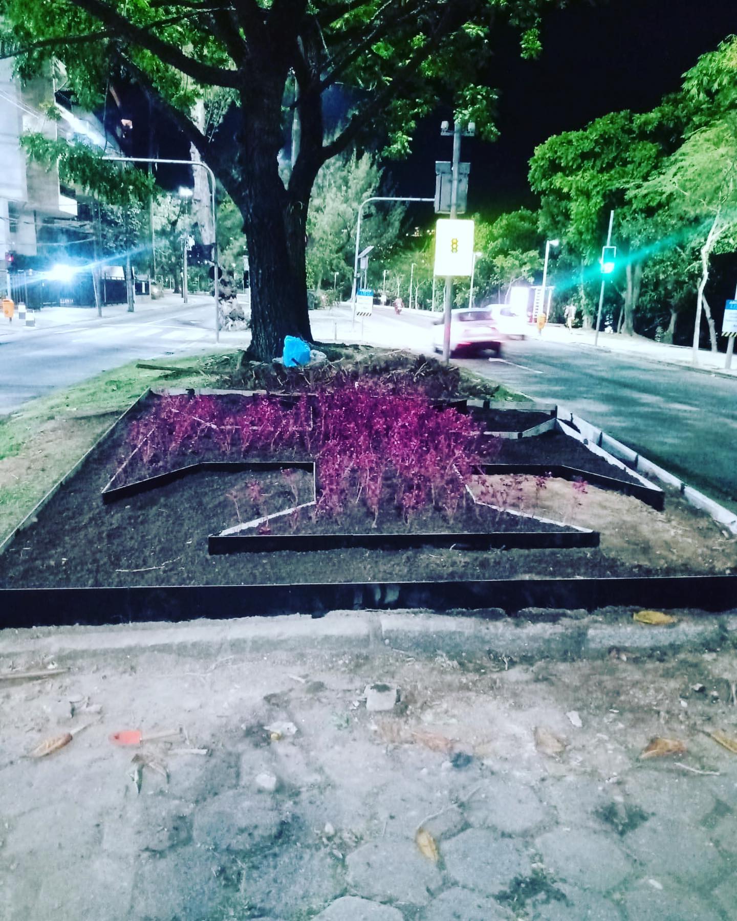 Veja foto do canteiro em forma de Cruz de Malta no entorno da sede náutica da Lagoa