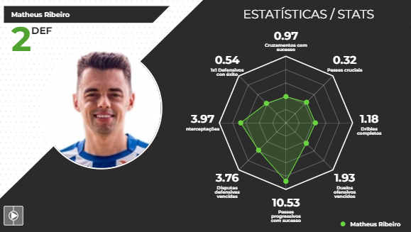 Confira números do lateral-direito Matheus Ribeiro, especulado no Vasco