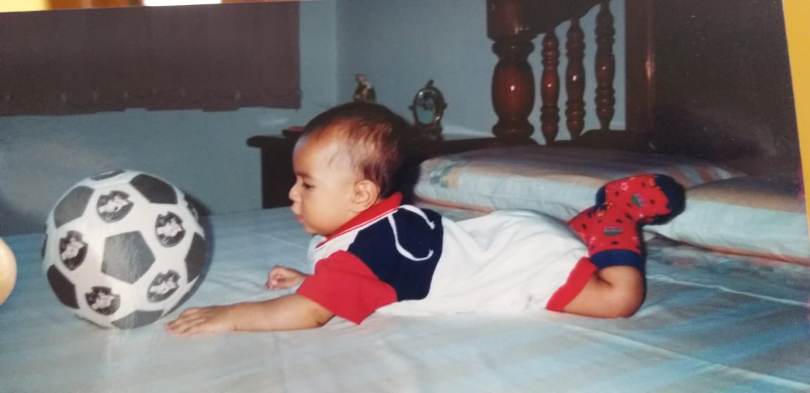 Veja foto de Paulo Victor, ainda bebê, olhando para bola do Vasco