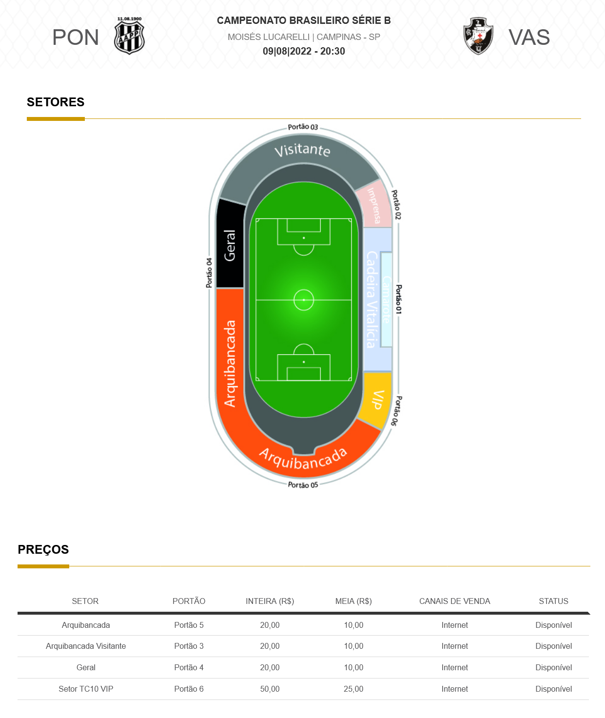 Vendas na bilheteria do Estádio Moisés Lucarelli a partir de 06/08/2022 às 11h00.