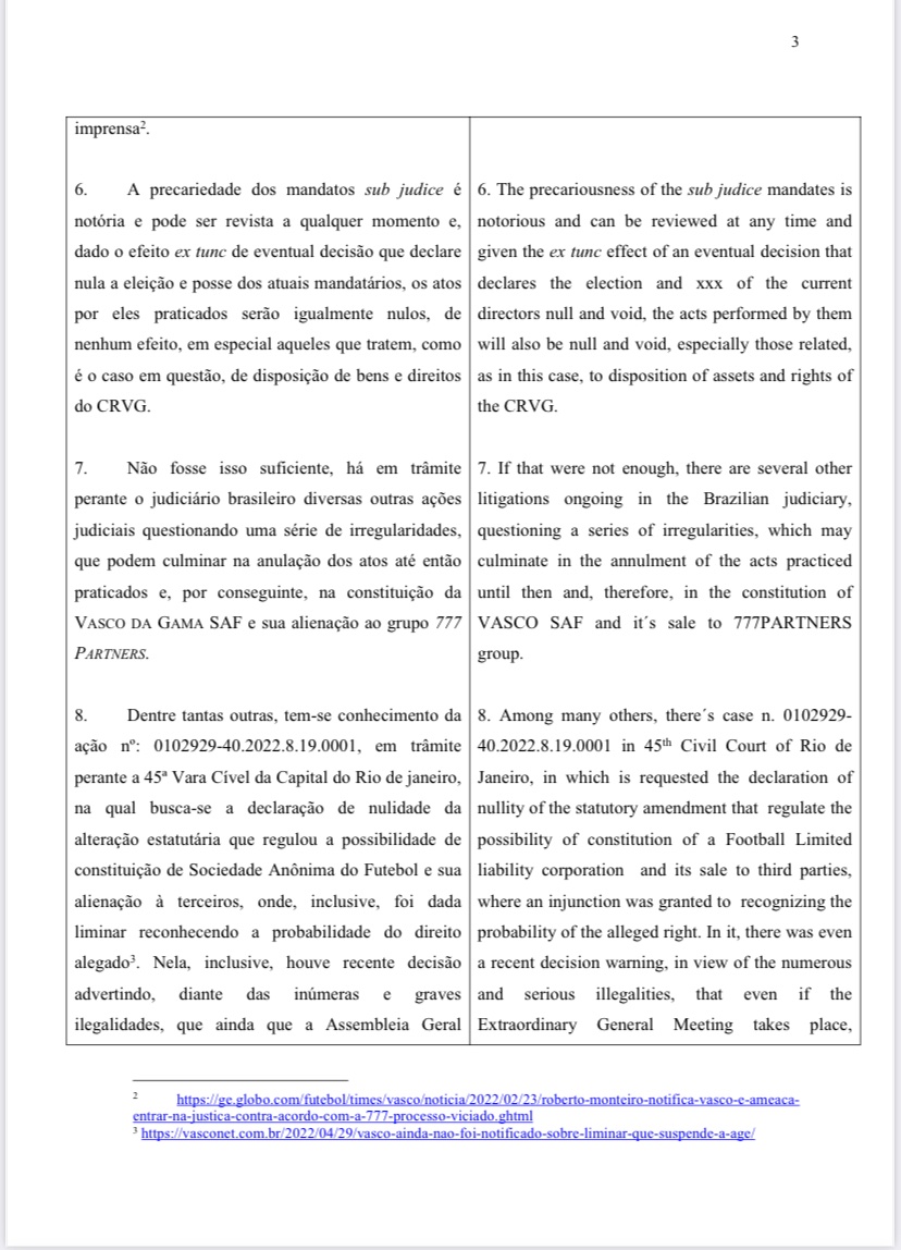 Eu e o @MrcioMagalhaes fizemos a notificação dos gringos para registrar o óbvio ululante em proteção ao CRVG. Mesmo os sócios favoráveis à SAF têm razões p/ concordar com o expediente, a não ser que estejam contra o Club de Regatas Vasco da Gama, cuja defesa seguirá intransigente