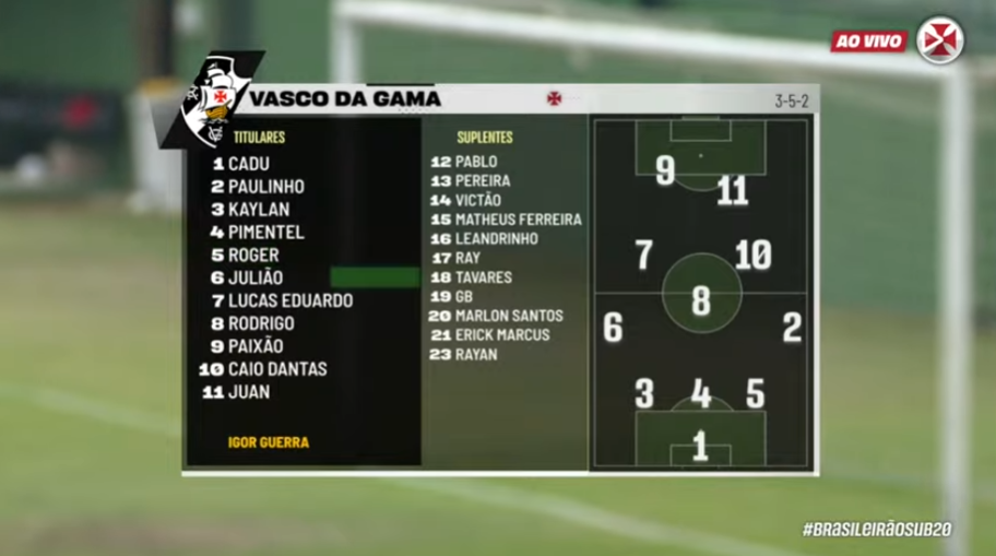 Disposição tática do Vasco para enfrentar o RB Bragantino