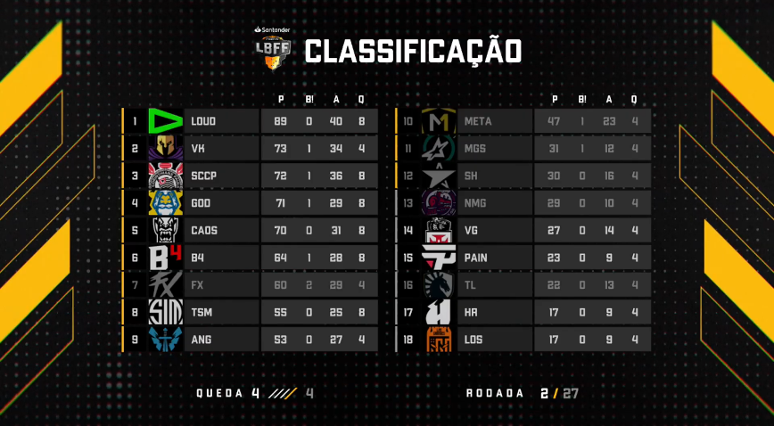 Tabela após o primeiro dia da BD Vasco nesse split da #LBFF