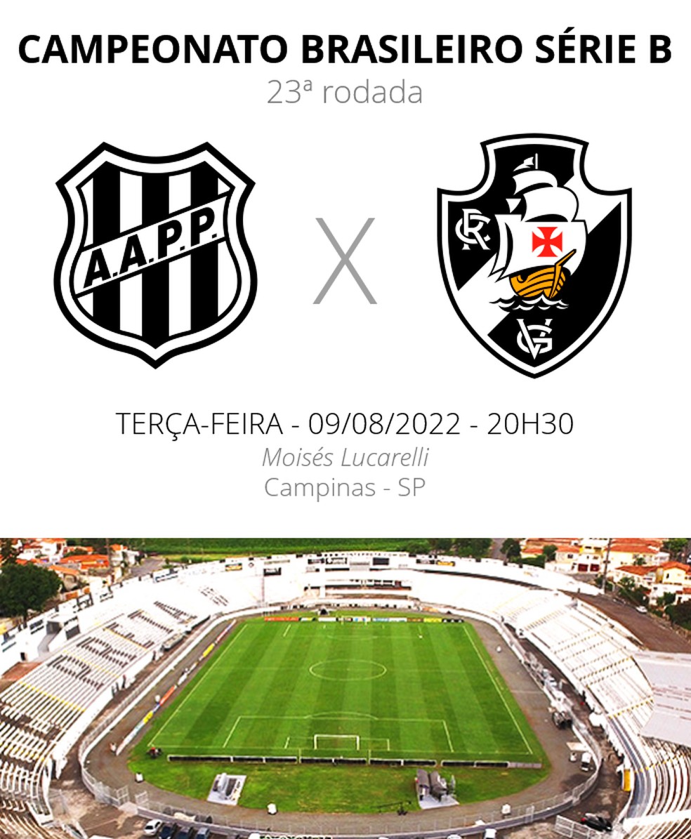 Ponte Preta e Vasco se enfrentam nesta terça-feira, às 20h30 (de Brasília), no Moisés Lucarelli, pela 23ª rodada da Série B do Brasileiro. O ge acompanha todos os lance em Tempo Real -