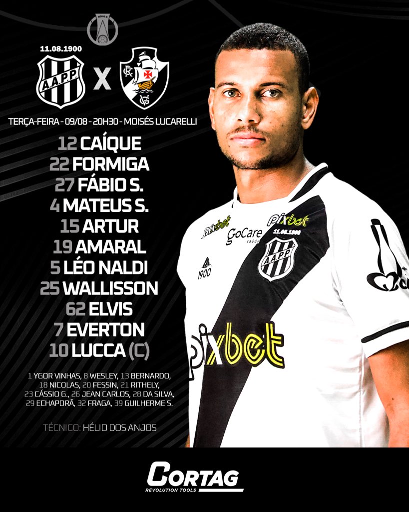 NOSSO TIME ESTÁ EM CAMPO E A NAÇÃO JOGA JUNTO! A Ponte Preta está escalada para enfrentar o Vasco na 23ª rodada do @brasileiraob. Vamos, Ponte! 🔥⚽🦍 #PONxVAS
