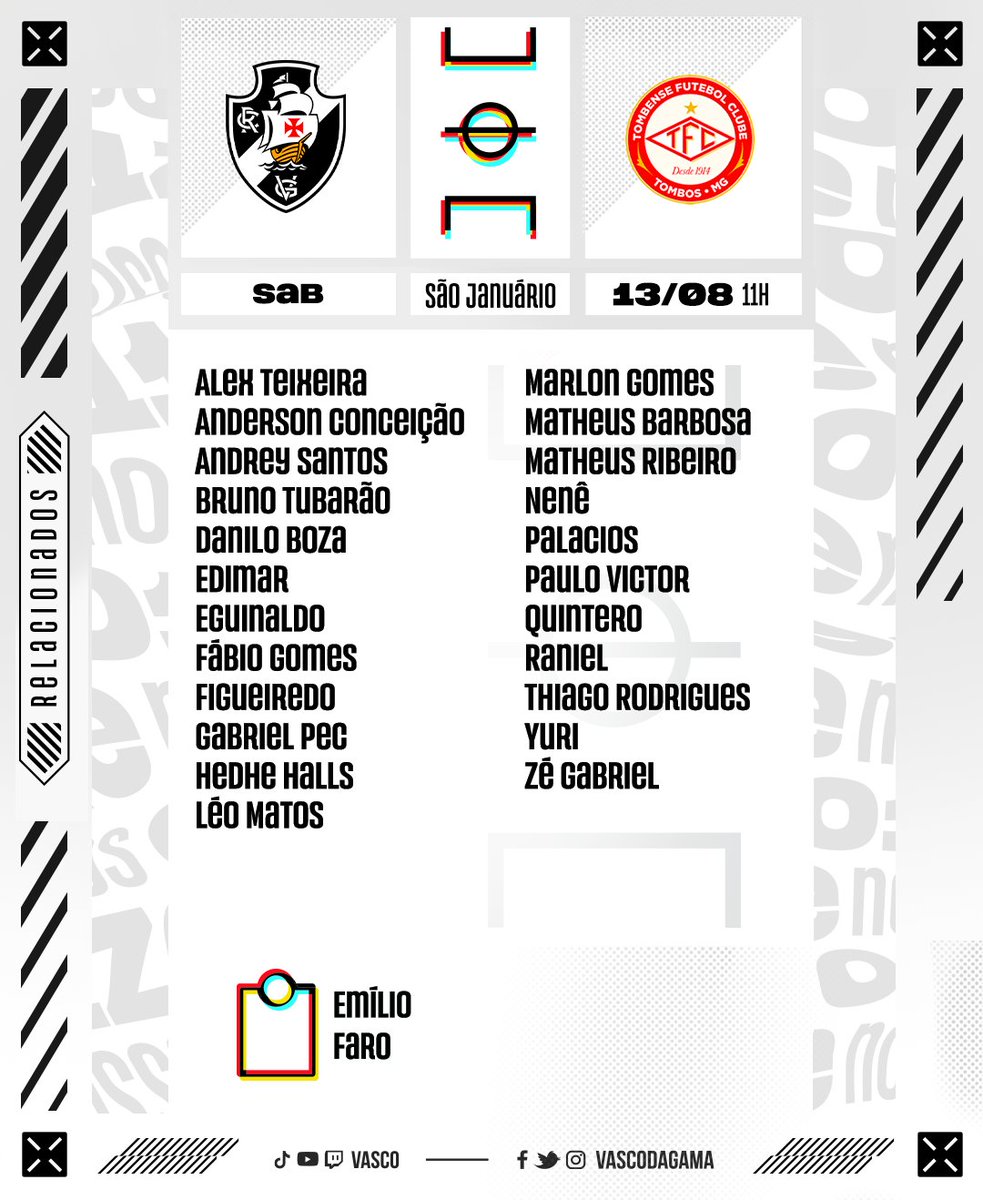 📋 Relacionados para a partida da manhã deste sábado (13), em São Januário 💢