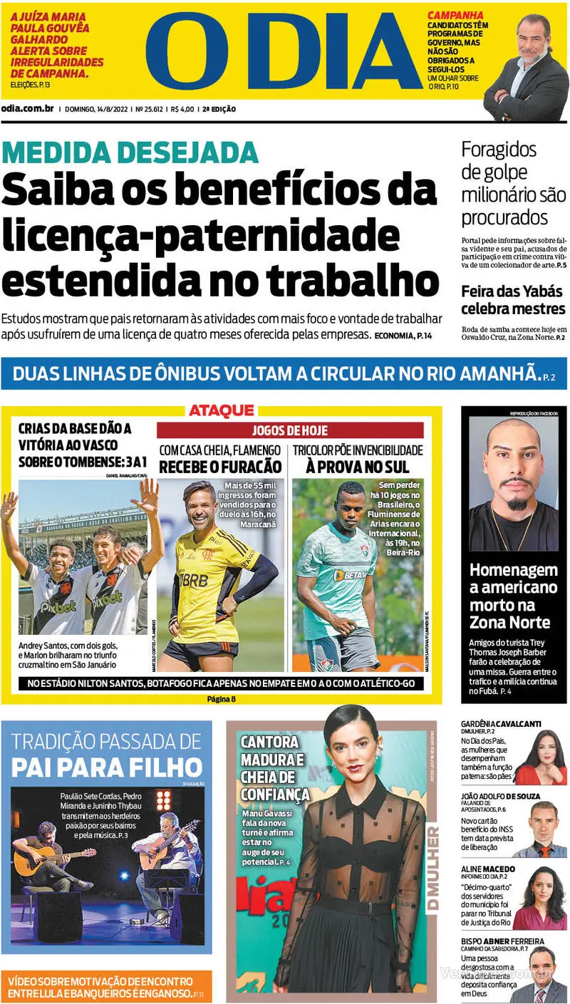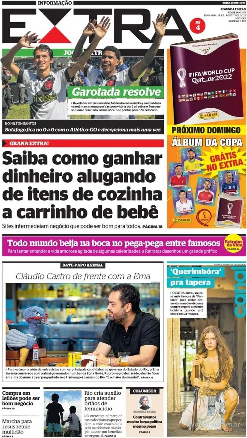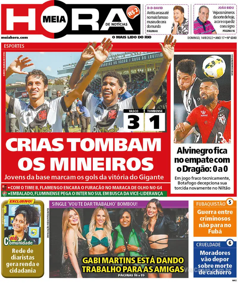 Veja as capas dos jornais após Vasco 3 x 1 Tombense