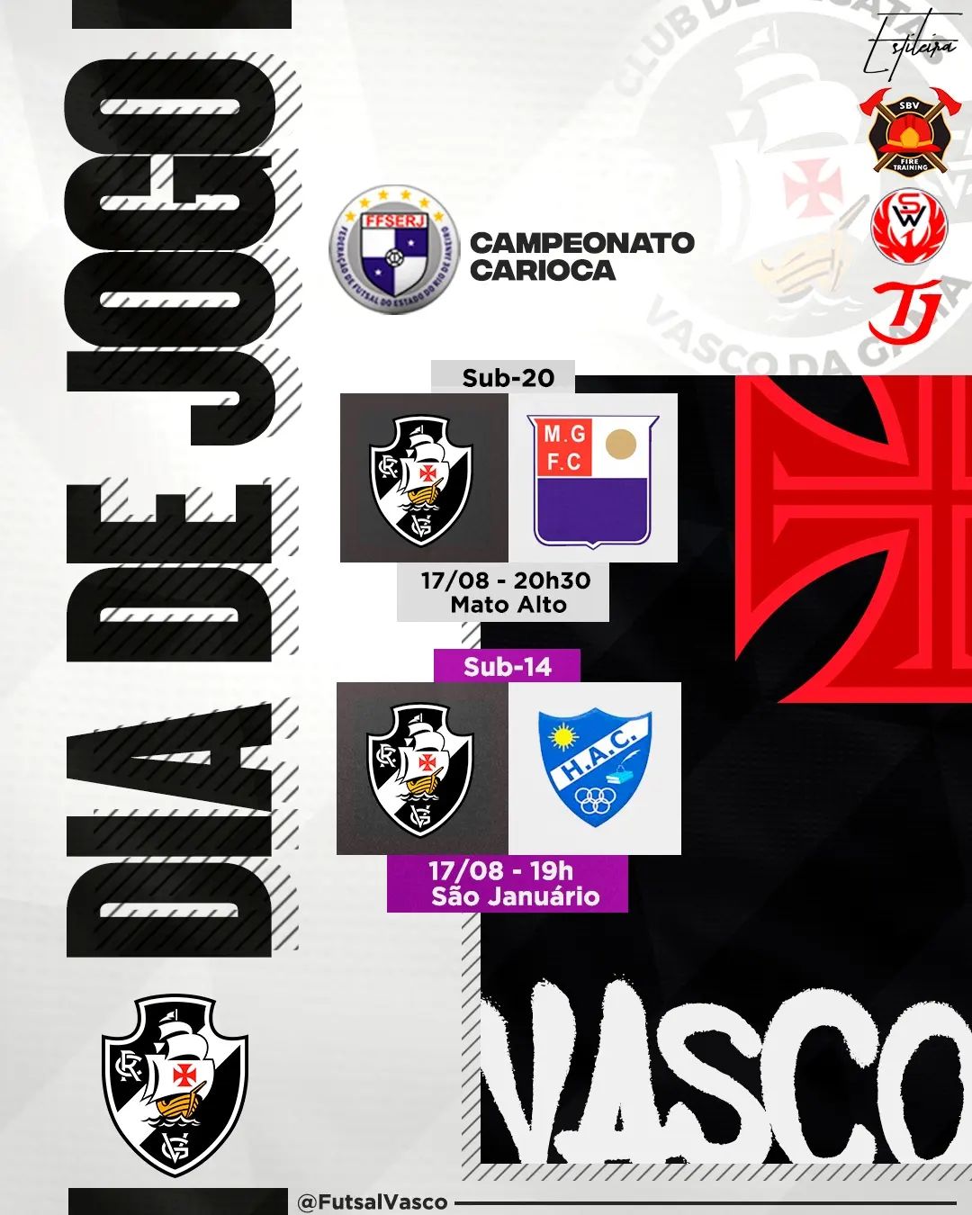 Futsal Base: Vasco enfrenta o Heliópolis pelo Sub-14 e o Maria da Graça pelo Sub-20 na noite desta 4ª