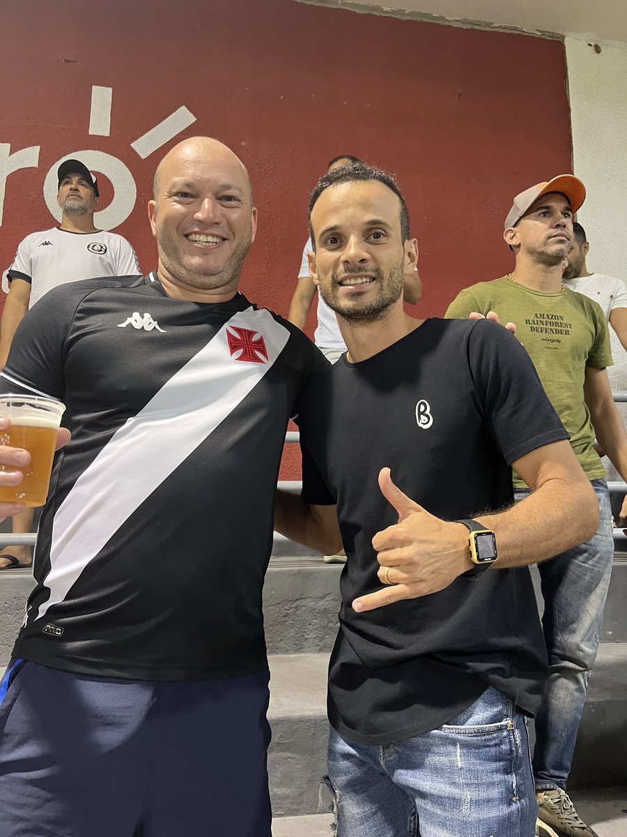 DETALHE! Morais e Wagner Diniz estiveram ontem junto com a torcida vascaína no estádio Rei Pelé.