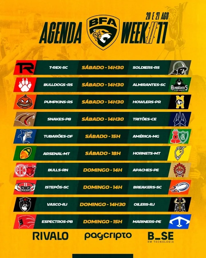 Confira as datas e horários de todos os dez jogos deste final de semana da BFA.