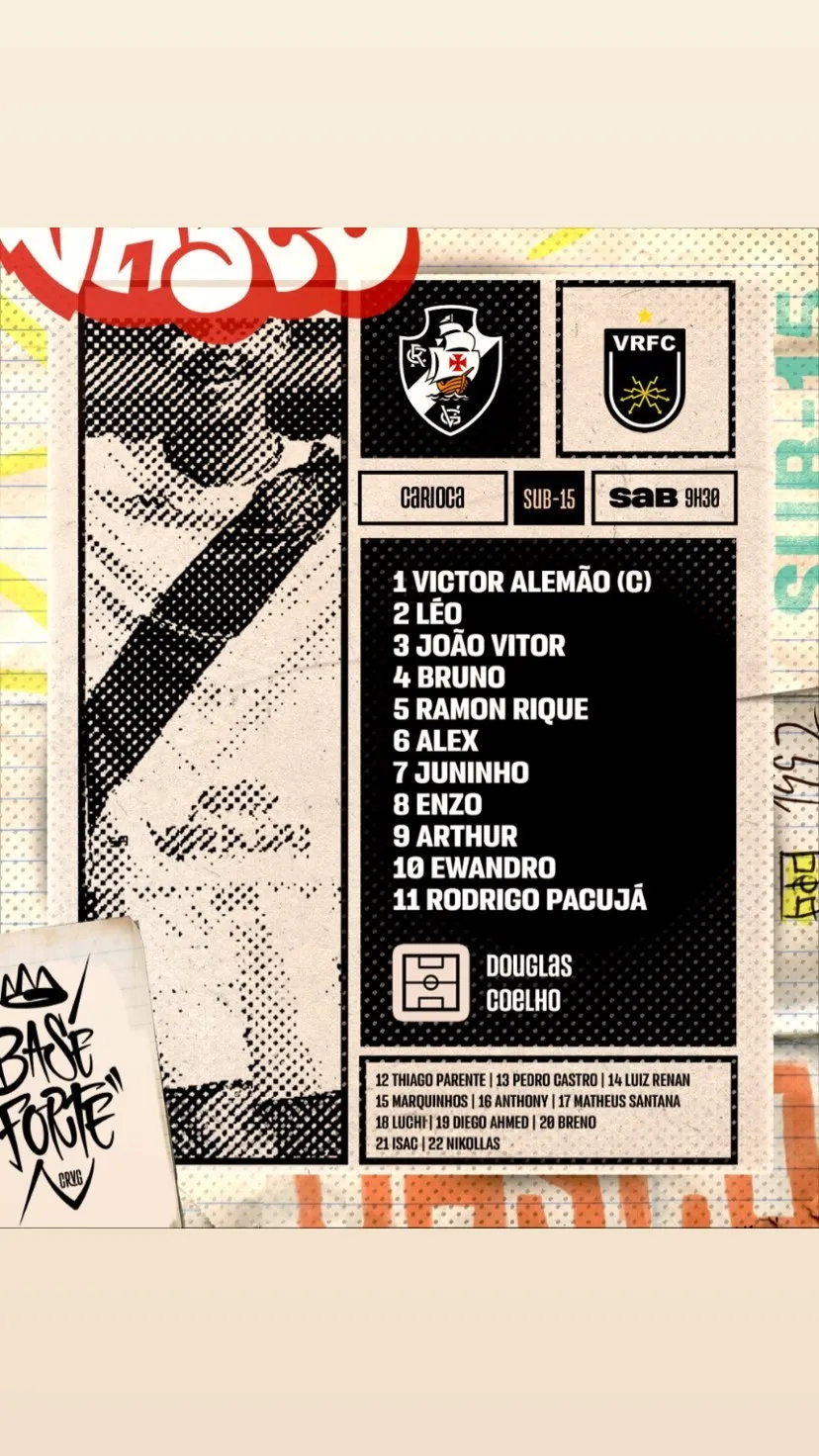 13/08/22 - Infantil: Veja a escalação do Vasco para o jogo contra a Portuguesa