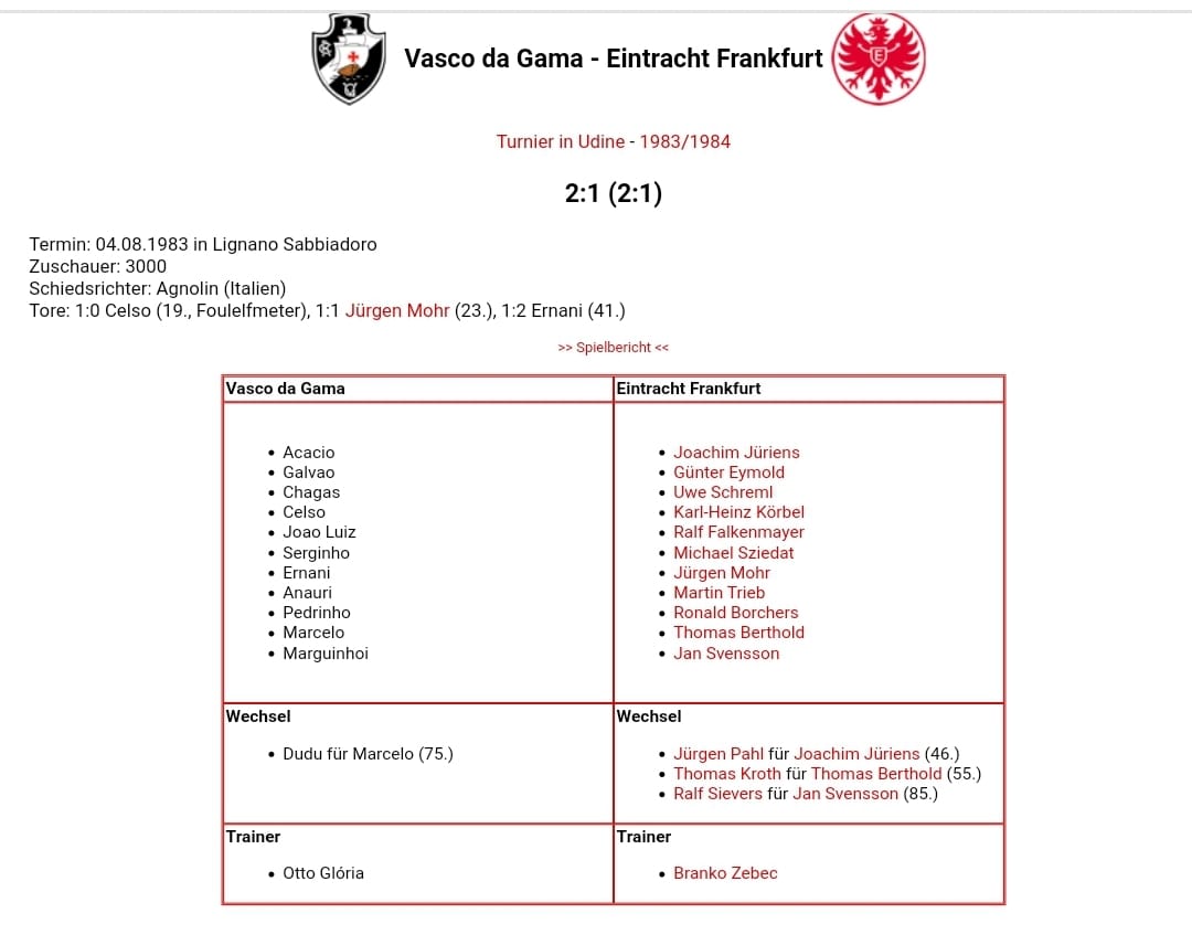 No único duelo de nossas histórias, a vitória foi do Gigante da Colina, no Torneio de Udine de 1983. 💢
