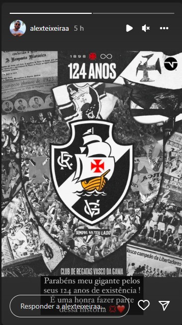 Parabéns, @VascodaGama pelos 124 anos. Orgulho de fazer parte do clube com a história mais linda do Brasil.