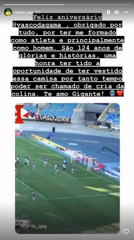 Fui tricampeão estadual, fui convocado para a Copa do Mundo vestindo a camisa cruzmaltina, então só posso celebrar tudo o que vivi no @VascodaGama. (+)