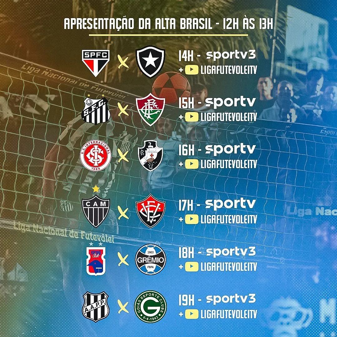 📺📱Cobertura ao vivo pelos canais SporTV e também no Canal da Liga Nacional de Futevôlei no YouTube.