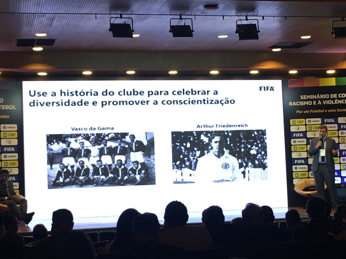 ... baseadas nas nossas melhores práticas, com resultados comprovados. A luta contra o racismo está no DNA do nosso clube. Temos orgulho do Vasco ser a caneta que escreve a história. E orgulho de termos sido citados pela Fifa como exemplo.