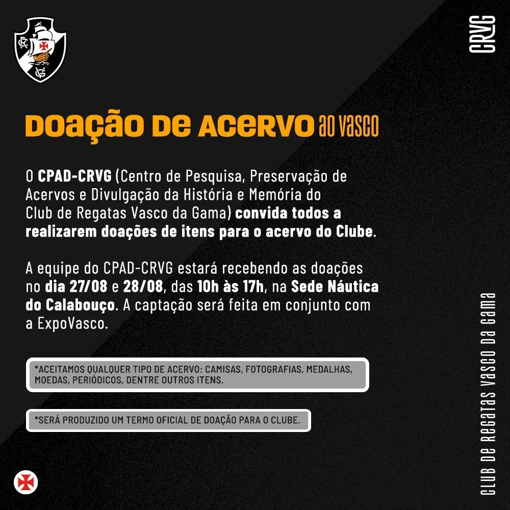 CPAD-CRVG terá posto de coleta de doações de acervo neste fim de semana no Calabouço durante a Expo Vasco