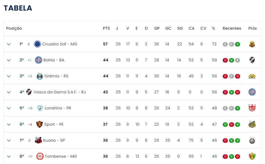 🚨 O nome do Vasco já mudou na tabela da Série B na CBF