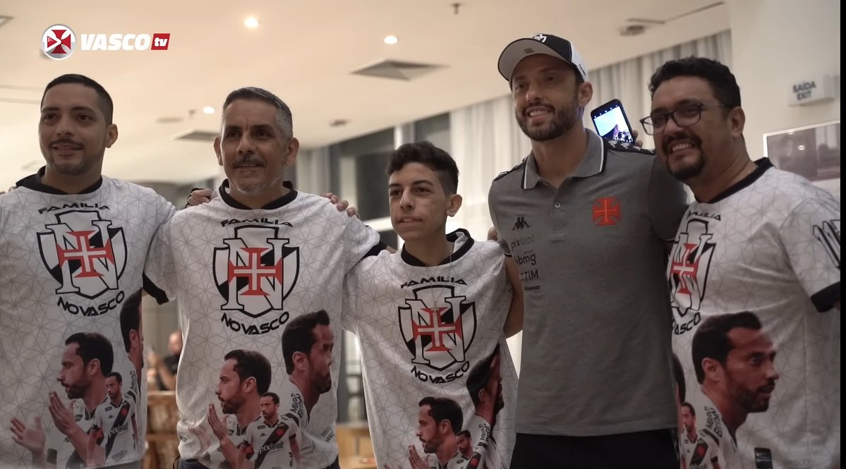 Torcedores do Vasco em Salvador tiraram foto com Nenê com camisa personalizada; veja