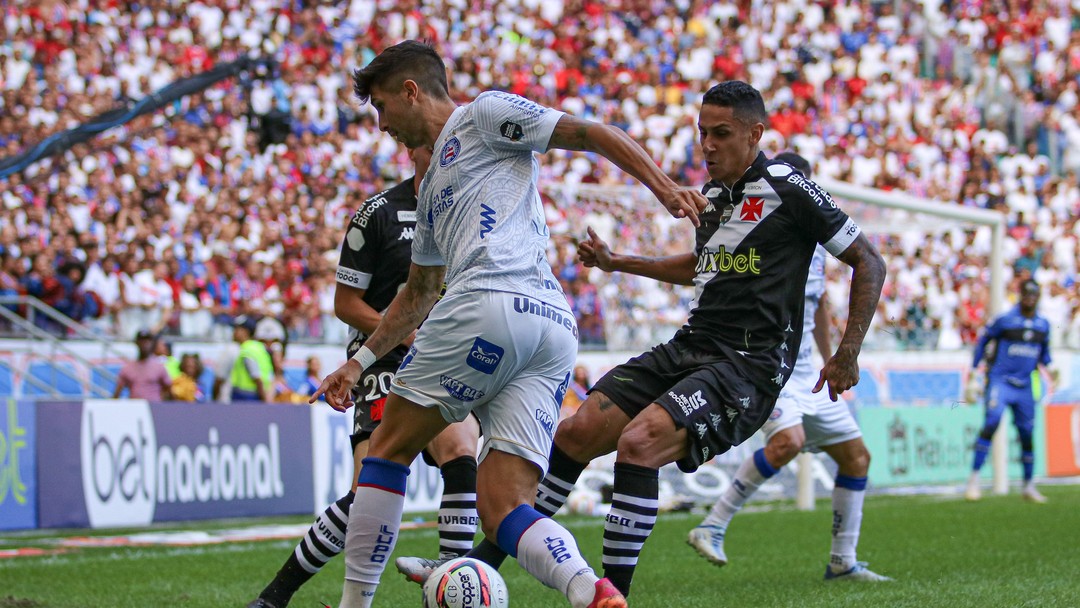 O Bahia sentiu o revés e viu o Vasco equilibrar as ações. Só que, aos poucos, os donos da casa voltaram a buscar o ataque. Os baianos conseguiram chegar ao empate em novo gol contra, aos 40 minutos. Matheus Bahia cruzou rasteiro, Quintero se esticou para cortar e acabou mandando para a própria rede.