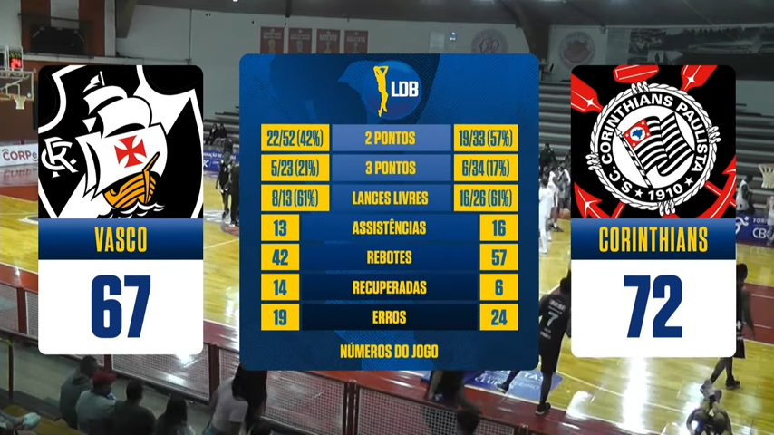 Basquete Base: Vasco perde para o Corinthians por 72 a 67 pela LDB