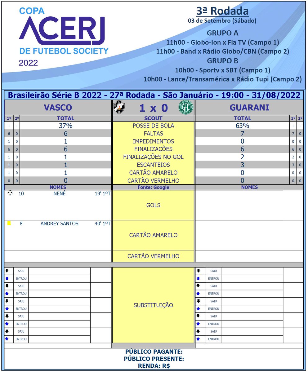 Scout do 1º Tempo de Vasco e Guarani pela 27ª Rodada do Campeonato Brasileiro da Serie B 2022 em São Januário (Fonte: Google) #Acerjinforma #BrasileiraoSerieB #VASxGUA #Vasco #Guarani @BrasileiraoB @VascodaGama @guaranifc