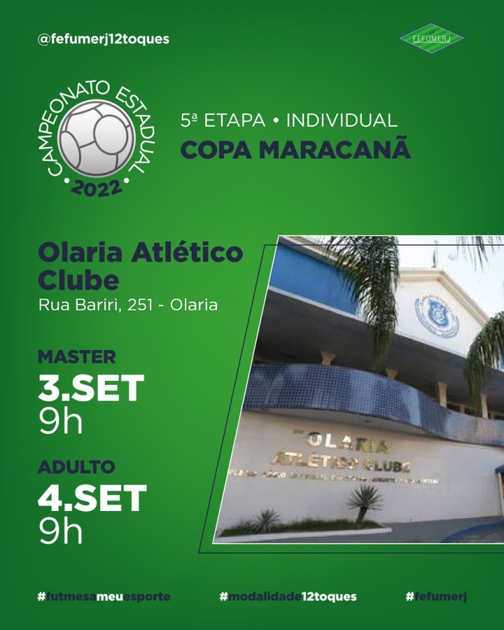 A temporada individual 2022 segue firme com a quinta etapa do estadual individual. Desta vez, o Olaria Atlético Clube será o palco dos craques do Rio de Janeiro para a disputa da Copa Maracanã. ⠀