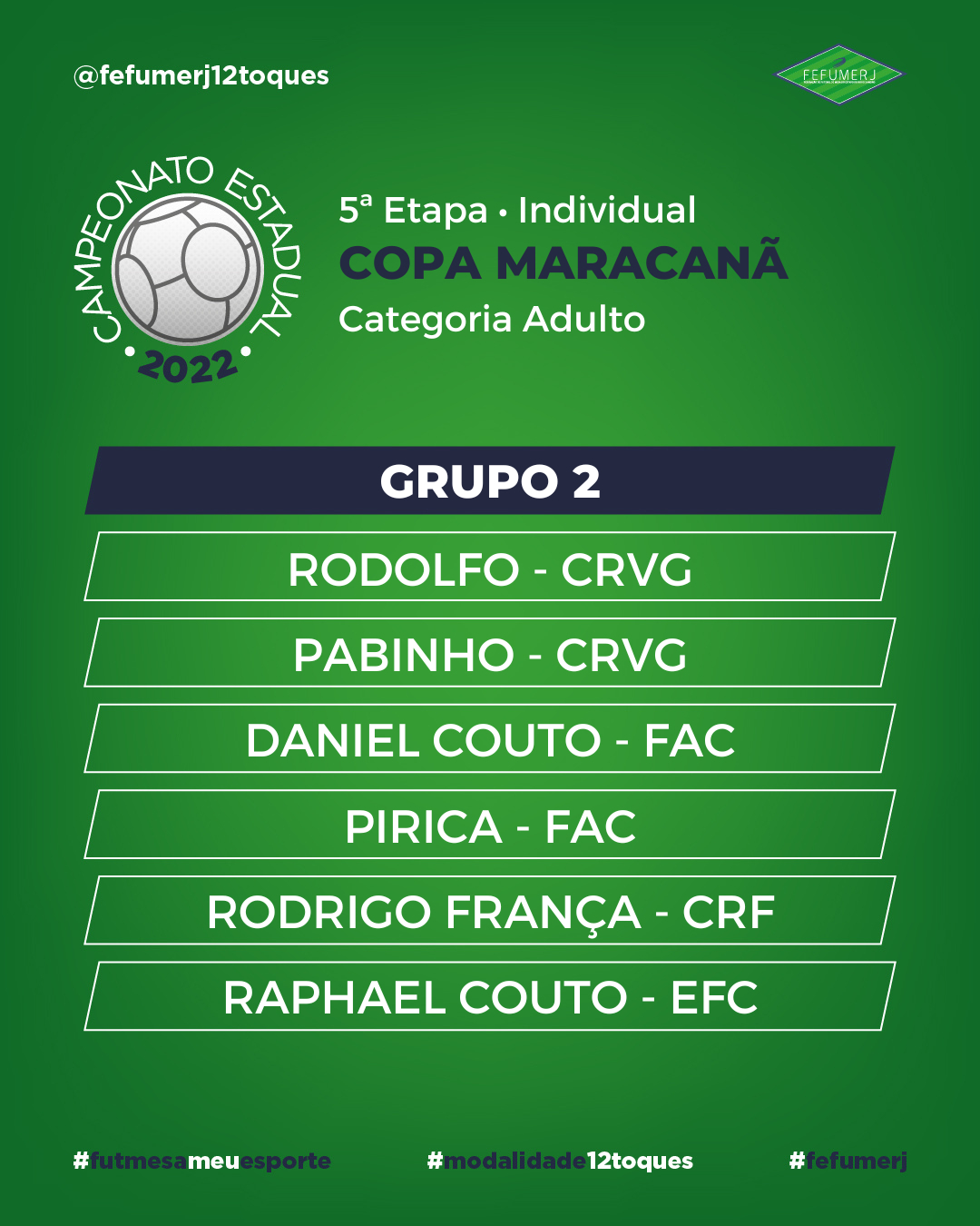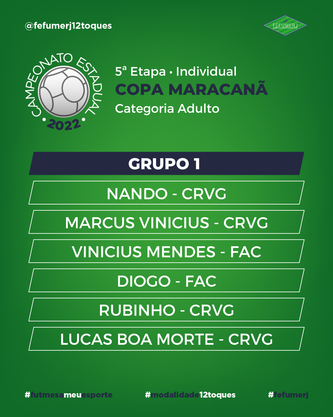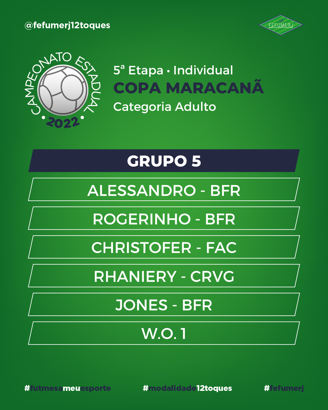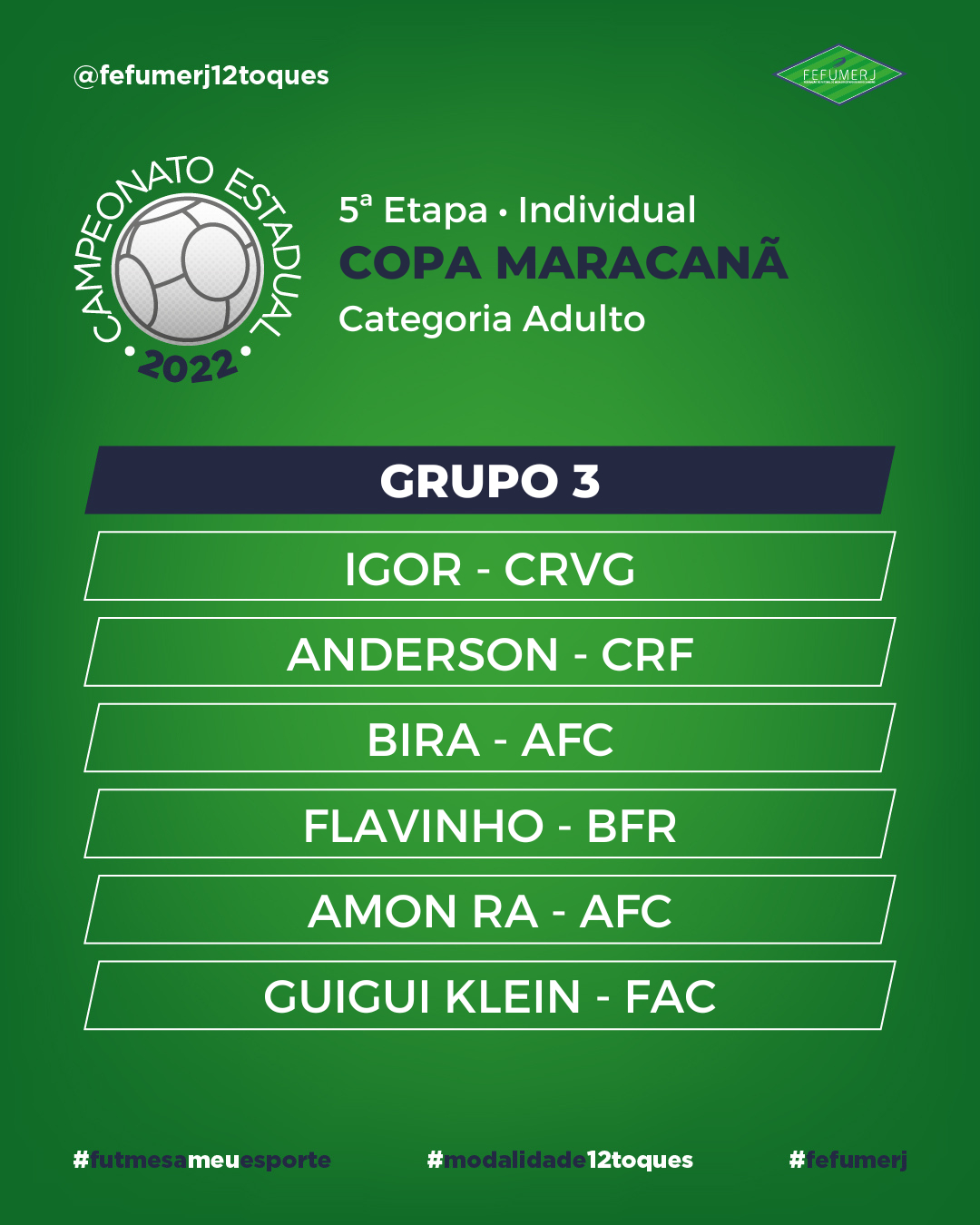 Confira os grupos da categoria Adulto para a disputa da Copa Maracanã, a 5ª Etapa do Estadual Individual 2022.