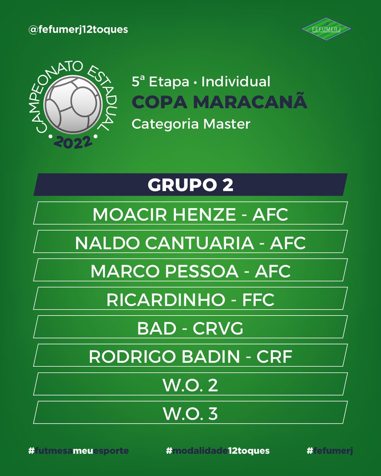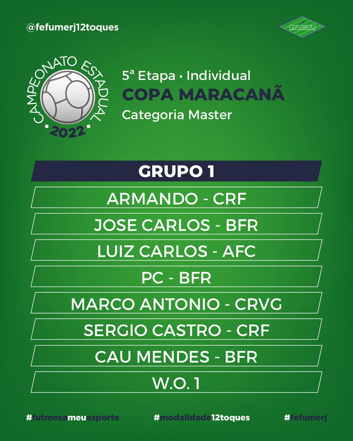 Confira os grupos da categoria Master para a disputa da Copa Maracanã, a 5ª Etapa do Estadual Individual 2022.