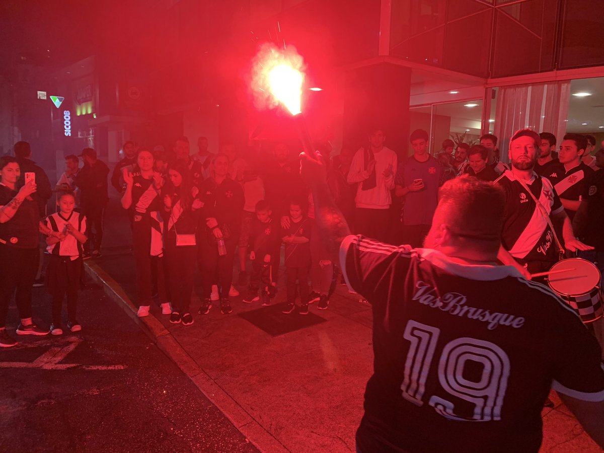 Veja mais um vídeo da festa da torcida na porta do hotel do Vasco em Brusque