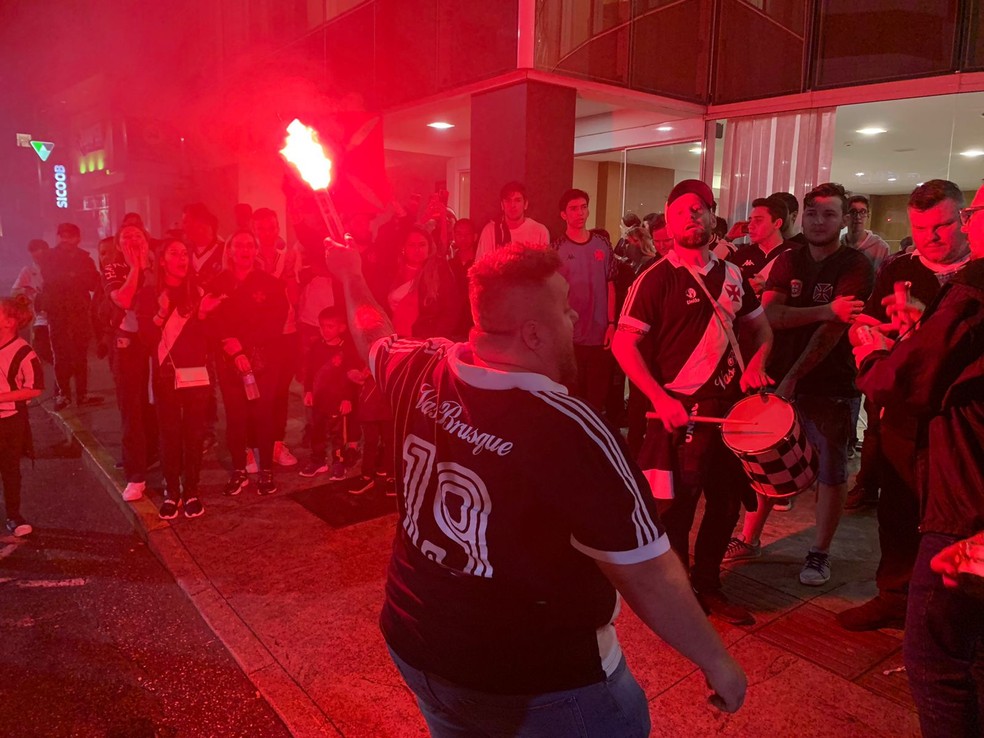 O Vasco já está em Brusque. A delegação vascaína chegou à cidade catarinense no início da noite desta sexta-feira com festa de alguns torcedores tanto no aeroporto quanto no hotel.