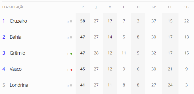 31/08/22 - Caso vença o Guarani, Vasco ultrapassará o Grêmio e terminará a 27ª rodada em 3º lugar
