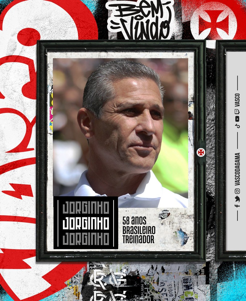 O Vasco anunciou oficialmente na manhã desta terça-feira a contratação do técnico Jorginho, que vai comandar a equipe nas últimas 10 rodadas da Série B do Brasileirão.