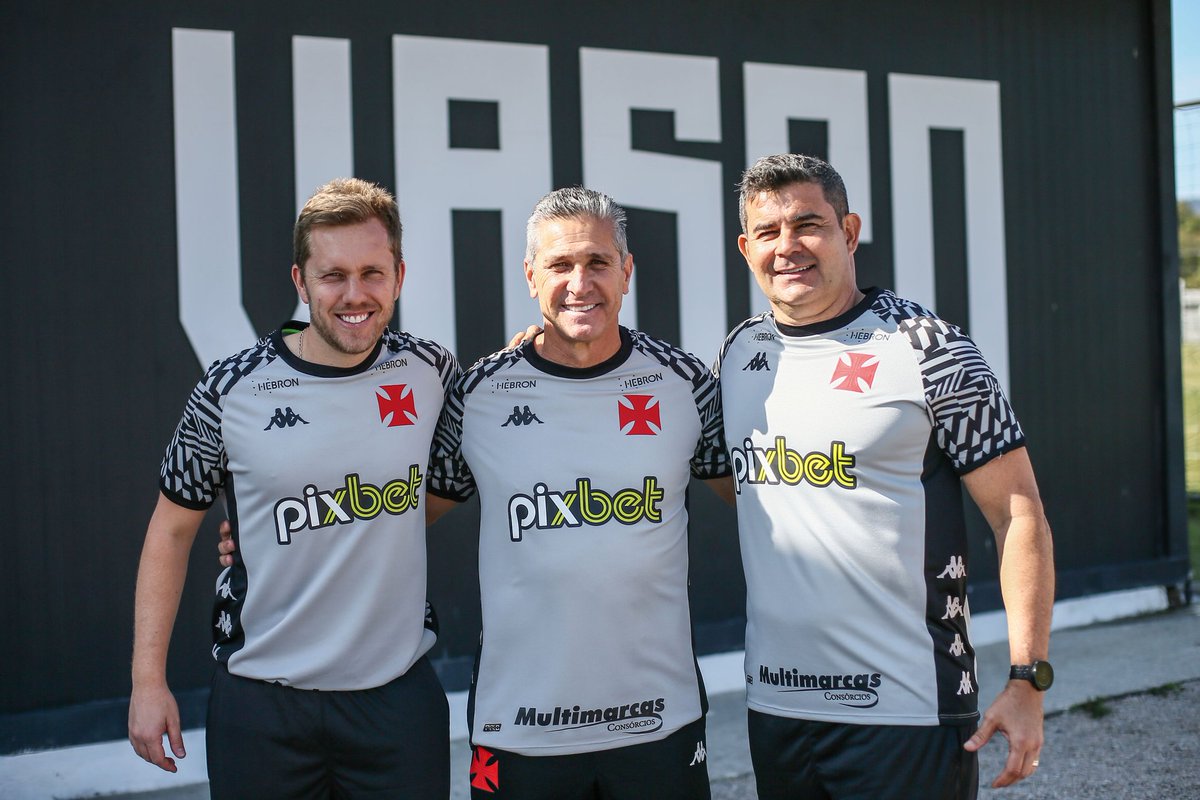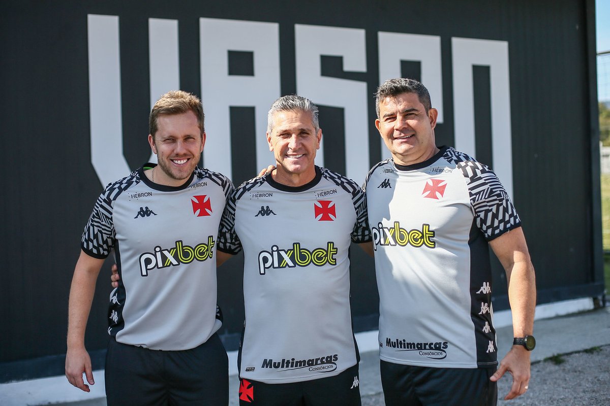 Veja foto de Jorginho no CT Moacyr Barbosa com o auxiliar Joelton Urtiga e o analista Bebeto Sauthier