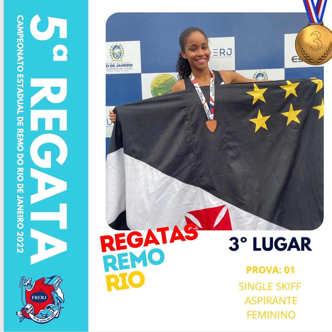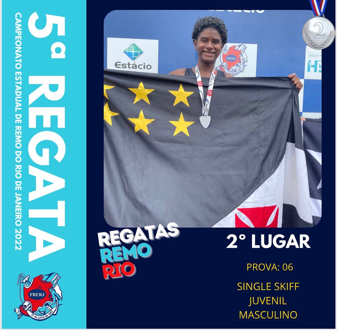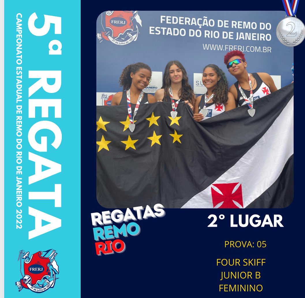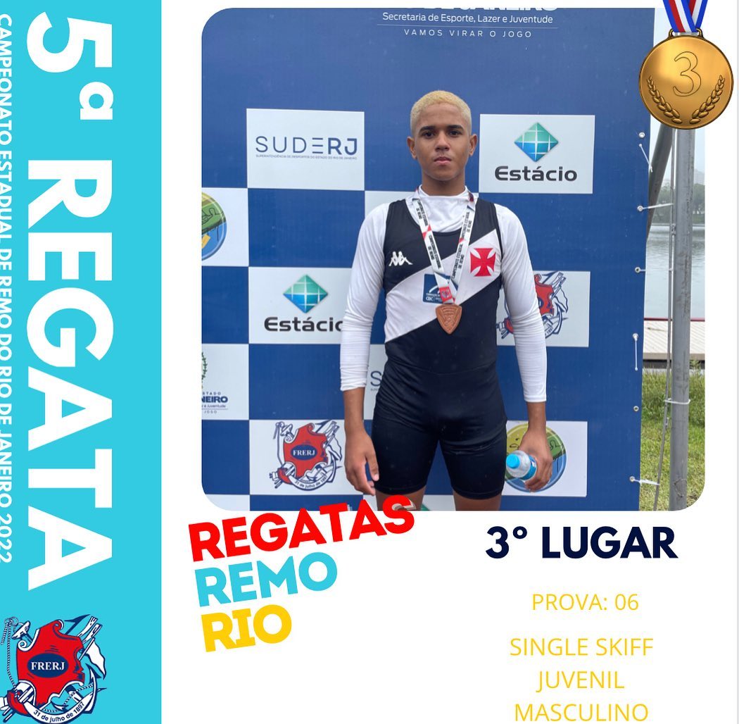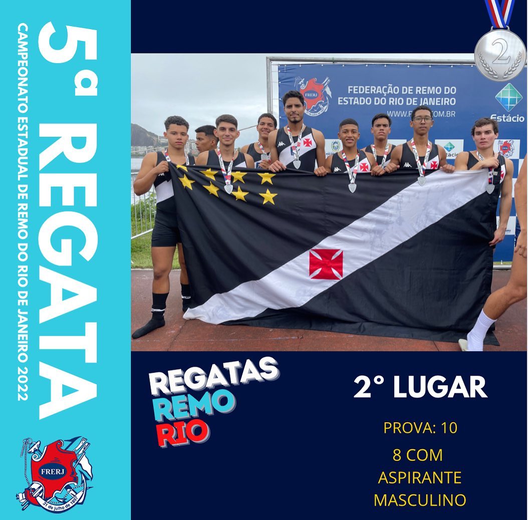 Foi disputada na manhã do último domingo (04/09), na Lagoa Rodrigo de Freitas, a 5ª regata do Campeonato Estadual de Remo. O Vasco terminou na 3ª colocação, atrás de Flamengo (1º) e Botafogo (2º). Na classificação do Estadual as posições são as mesmas. A última regata está prevista para o dia 16 de outubro.